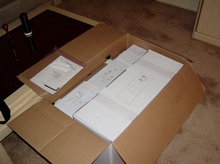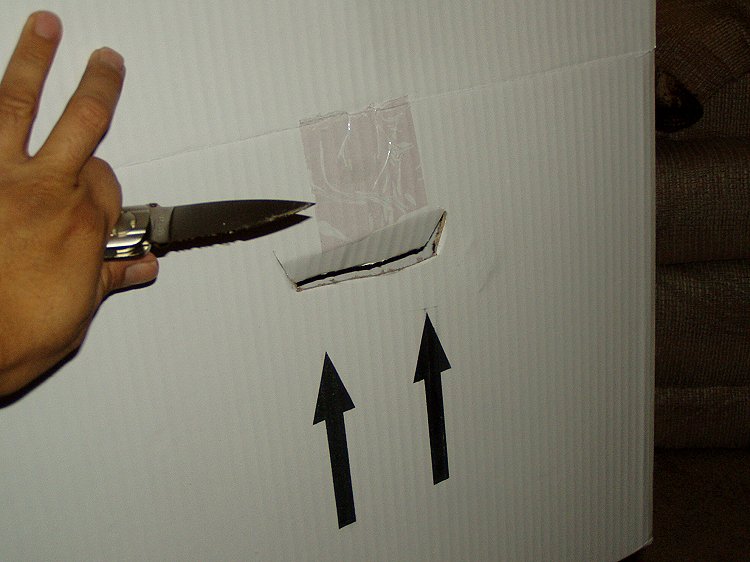 The second box makes a good temporary carrying case. Hand holes can be cut above these arrows.