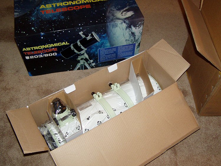 In the last two months, sellers have begun dumping massive numbers of Chinese-made reflectors on Ebay. The sheer numbers keep bid prices low: 6" scopes sell for about $125-150 and 8" scopes can be had for less than $300 shipped. The test unit was bought new from an ebay seller for $268.00 including shipping. The scope was received within a week of sending the cashier's check to the seller in Vegas.